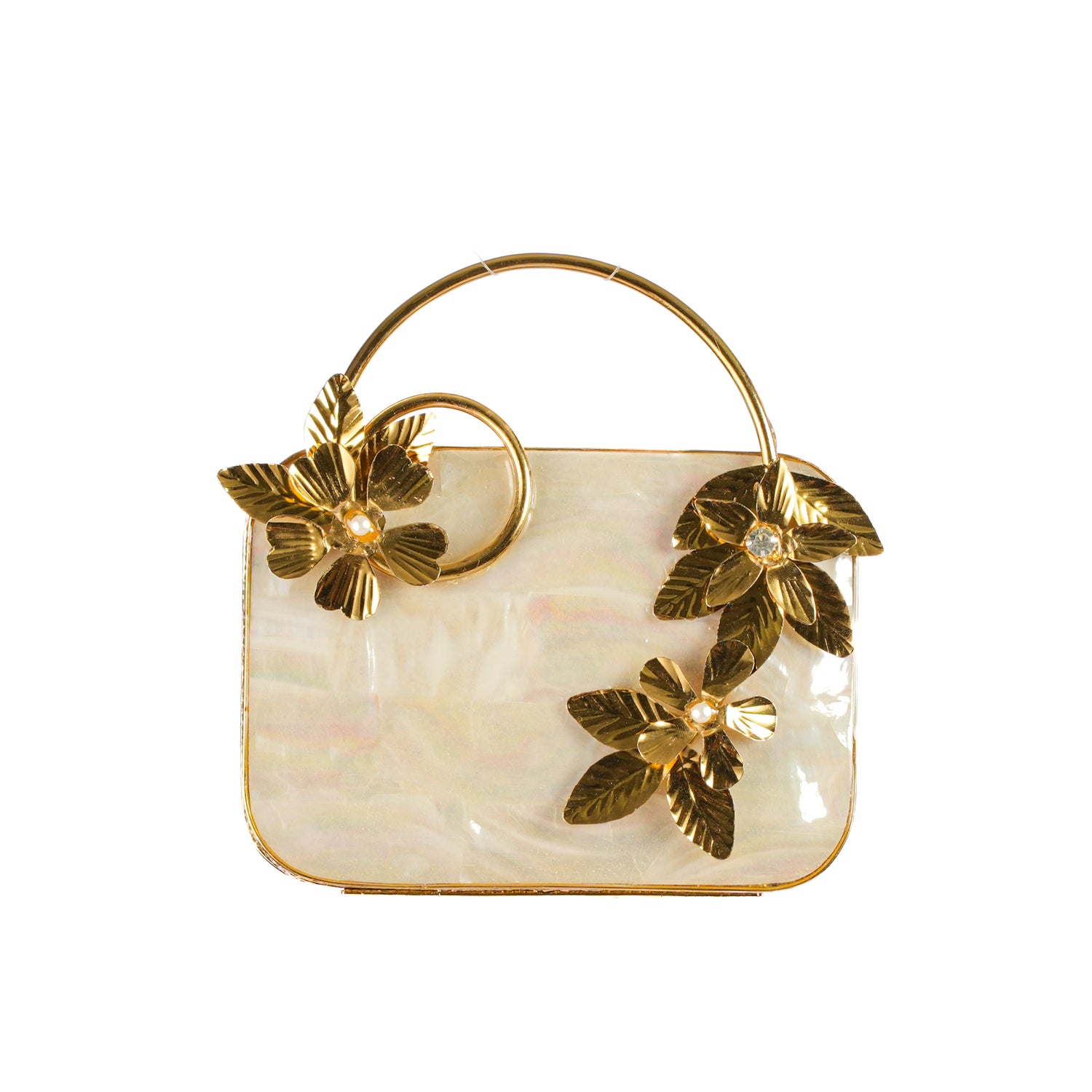 The Aria Bloom Clutch is a masterpiece of elegance, featuring a stunning gold floral embellishment that adds a touch of opulence.