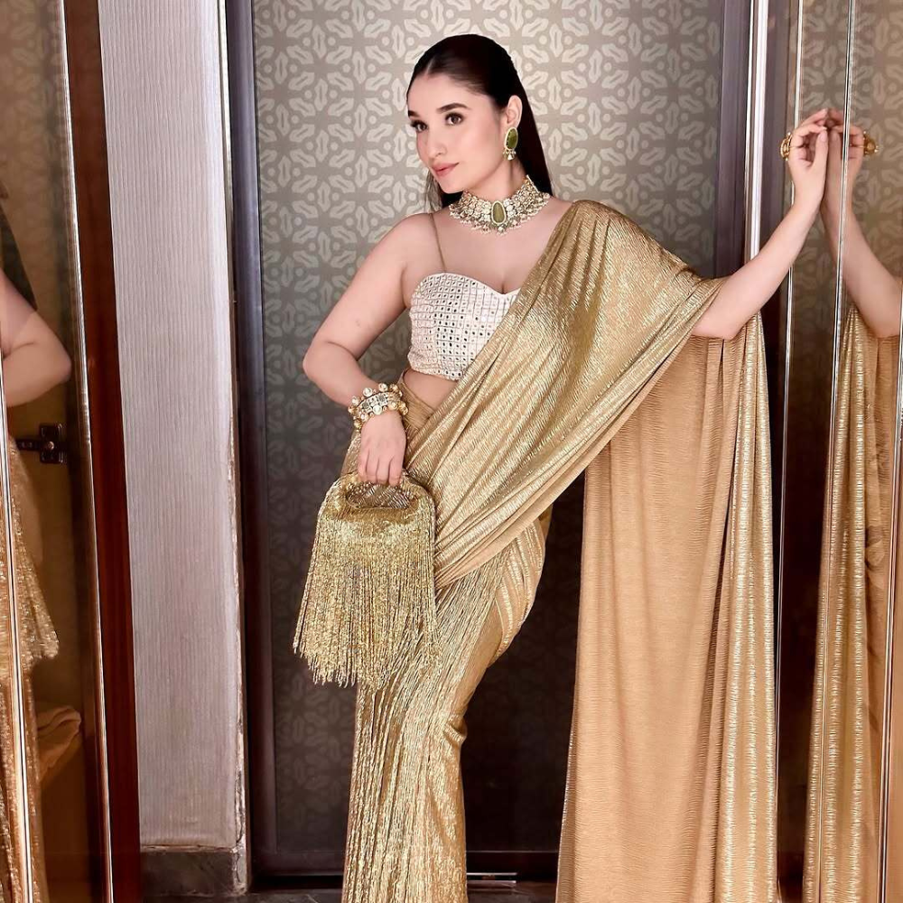 When Tanya stepped out in her metallic gold drape saree, she knew exactly how to take the look up a notch. She chose our Lilia Gold Tassel Bag—a stunning piece that echoes movement, sparkle, and bold elegance. The crystal tassels perfectly mirrored the fluidity of her outfit, making the bag an unforgettable accent. Looking for that show-stopping touch for your next celebration? Let Tanya’s pick guide you.