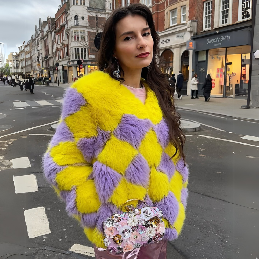 Amarilla showed us how it’s done — blending runway-ready vibrance with whimsical charm. She styled our Floral Crystal Mini Purse with a striking faux fur jacket in bright yellow and lavender, letting the bag soften the edges with its intricate floral embellishments and pastel sparkle. Whether you're strolling through the city or headed to fashion week, this purse is your pop of playful femininity. It adds just the right contrast to edgy looks — turning heads, inviting compliments, and reminding the world that your accessory game is as fearless as your fashion.