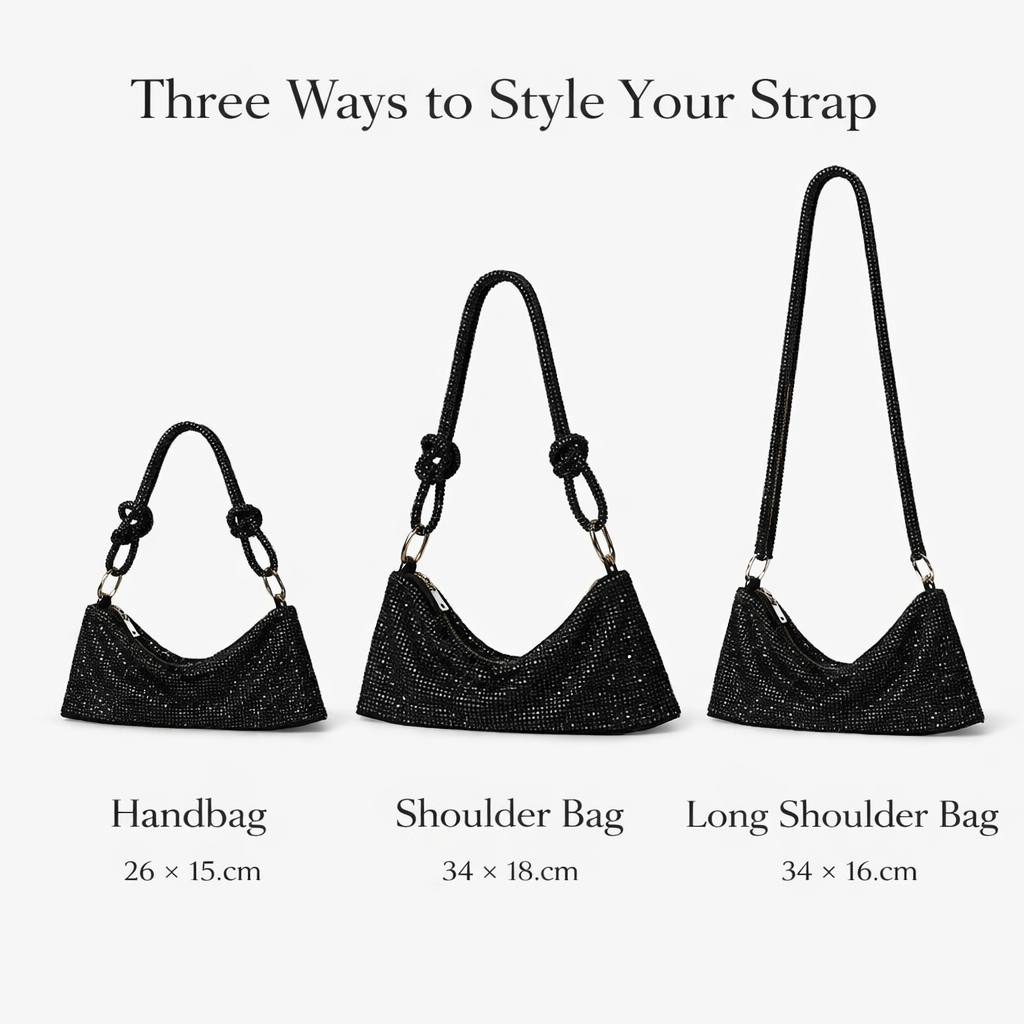 The Midnight Black Shimmer Bag is the definition of classic glamour. Its deep black crystal finish delivers a bold yet timeless appeal, effortlessly complementing both minimal and statement outfits.