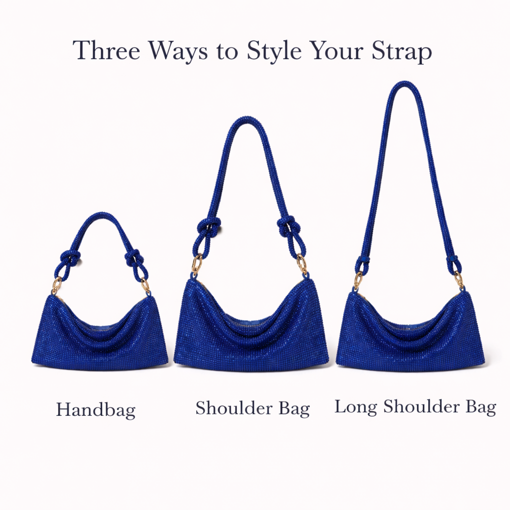 The Royal Blue Shimmer Bag commands attention with its rich, vibrant tone and luminous crystal detailing. Bold yet refined, it’s designed for those who love making a confident statement.